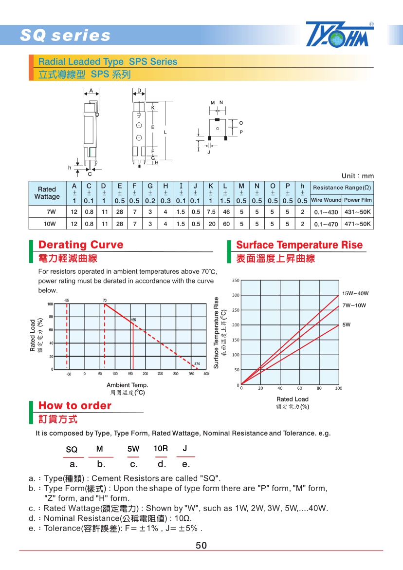 4、高電阻值采用金屬氧化皮膜體(MO)代替繞線方式制成。